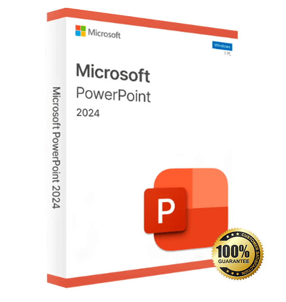 - – 1 Activation Code for Microsoft PowerPoint 2024 valid for 1 user (Binding Product Key)