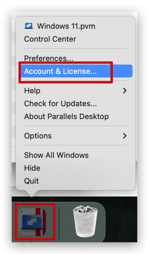 11. Congratulations! Activation has been completed. You can right-click on Parallels icon > click ‘Account & License…’ to view the license status. (the screenshot below for 20 Pro version)